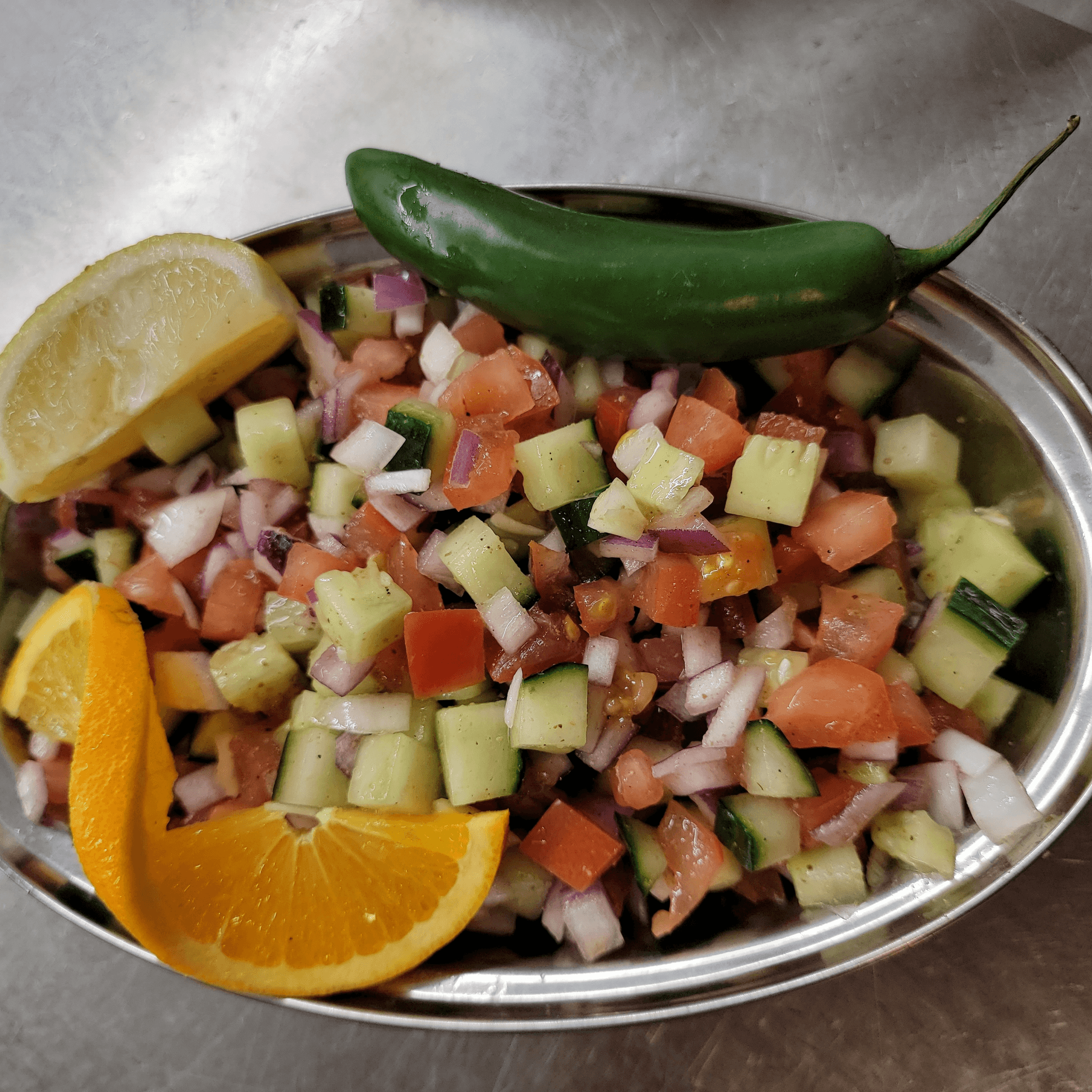 Fresh diced tomato, Persian cucumber & onion with lemon dressing