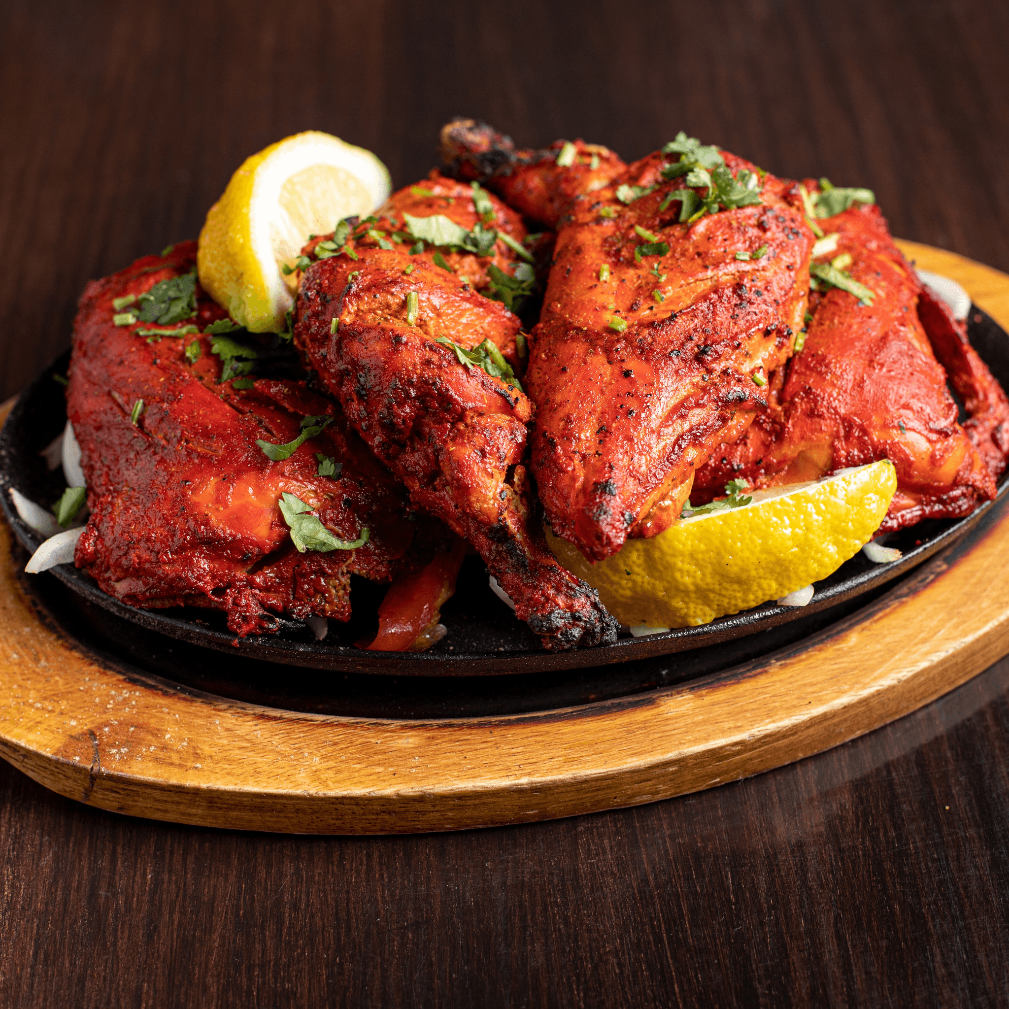 Chicken on bone, marinated in spices, tandoor grilled. 4-Leg-Thighs