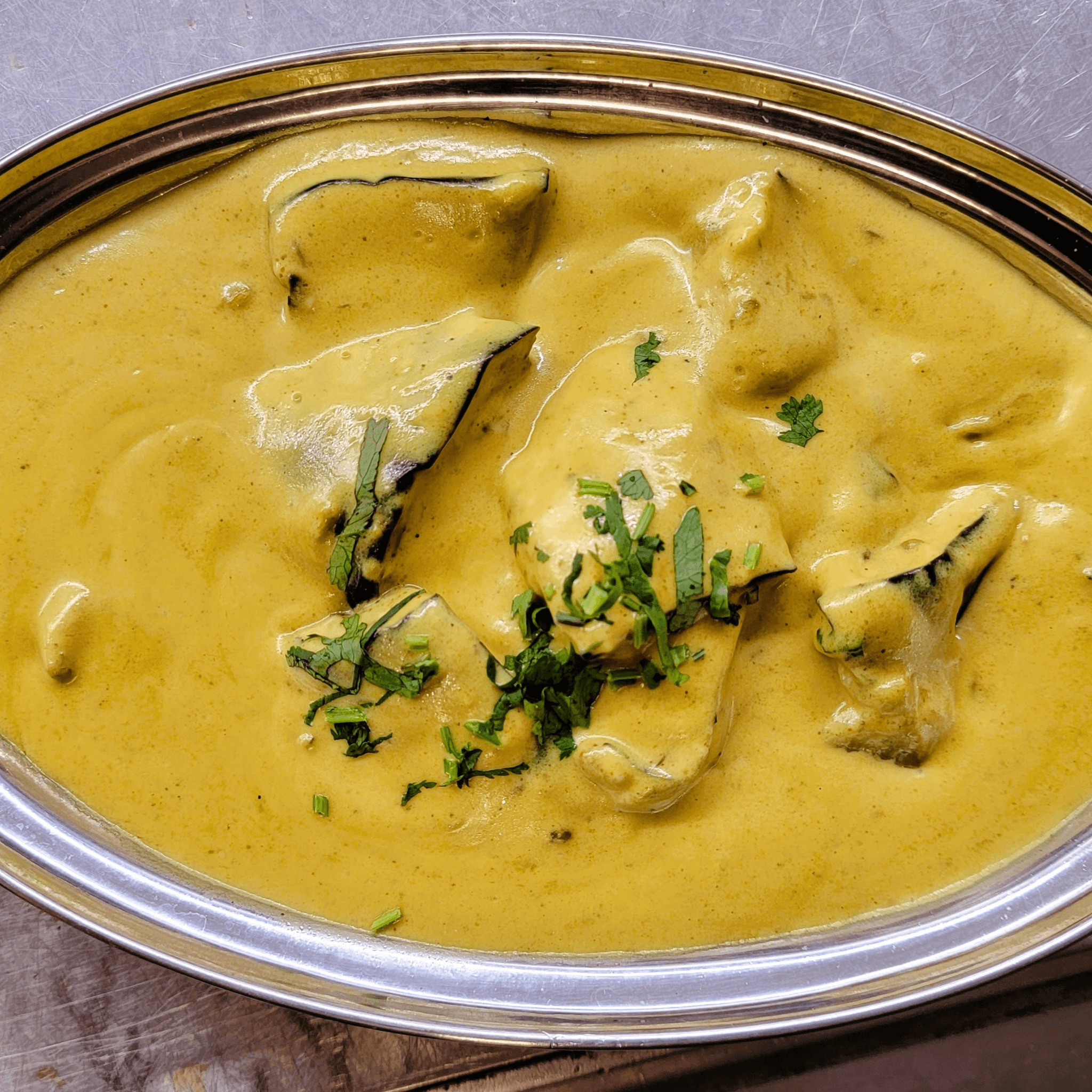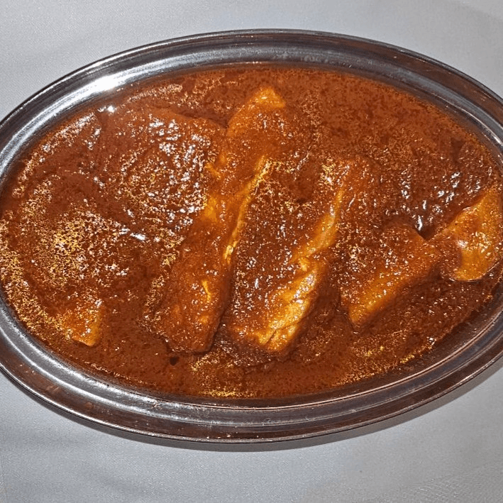 Wild Alaskan Cod prepared in sauteed garlic, ginger, serrano, red onions in coconit milk with touch of tomato sauce. Spicy.