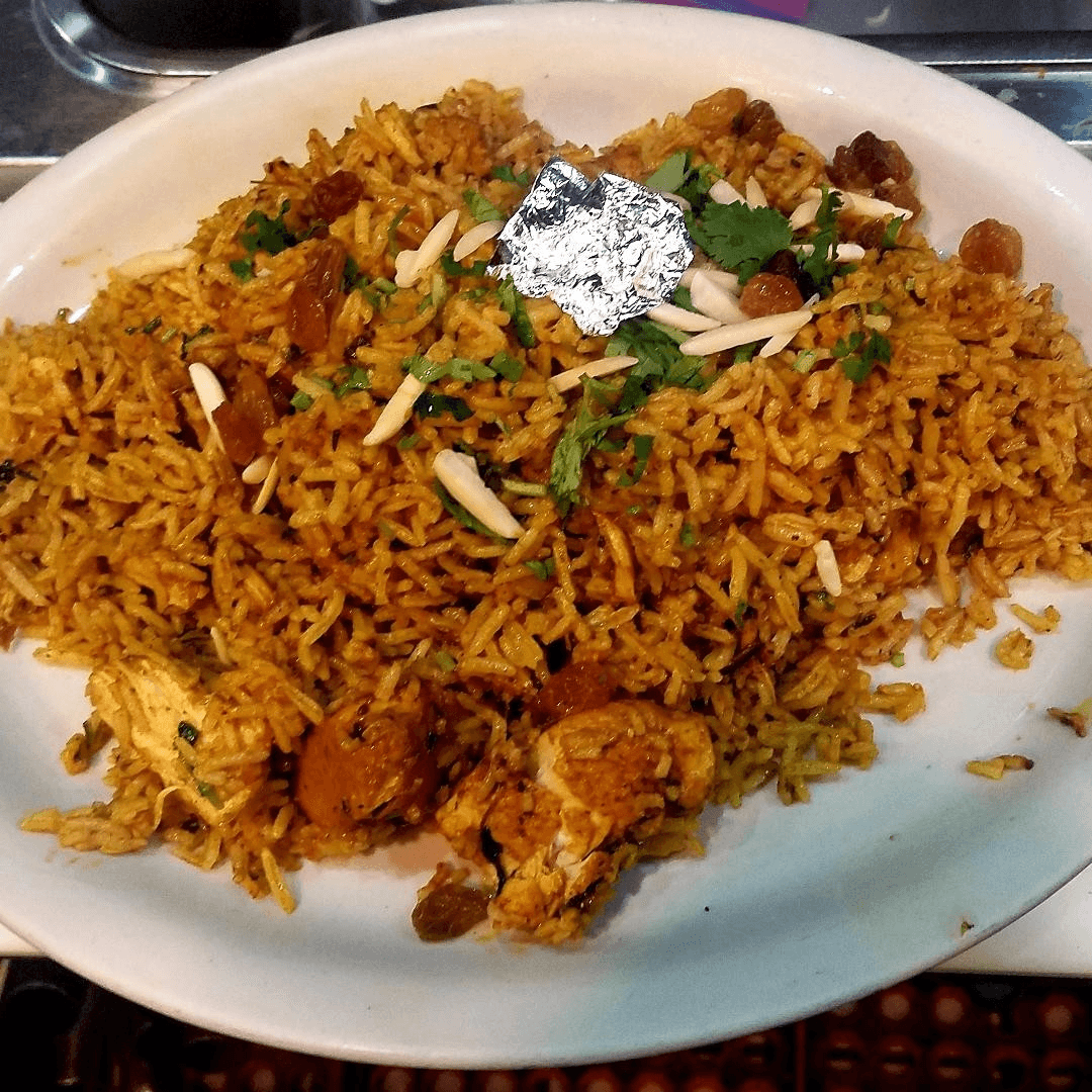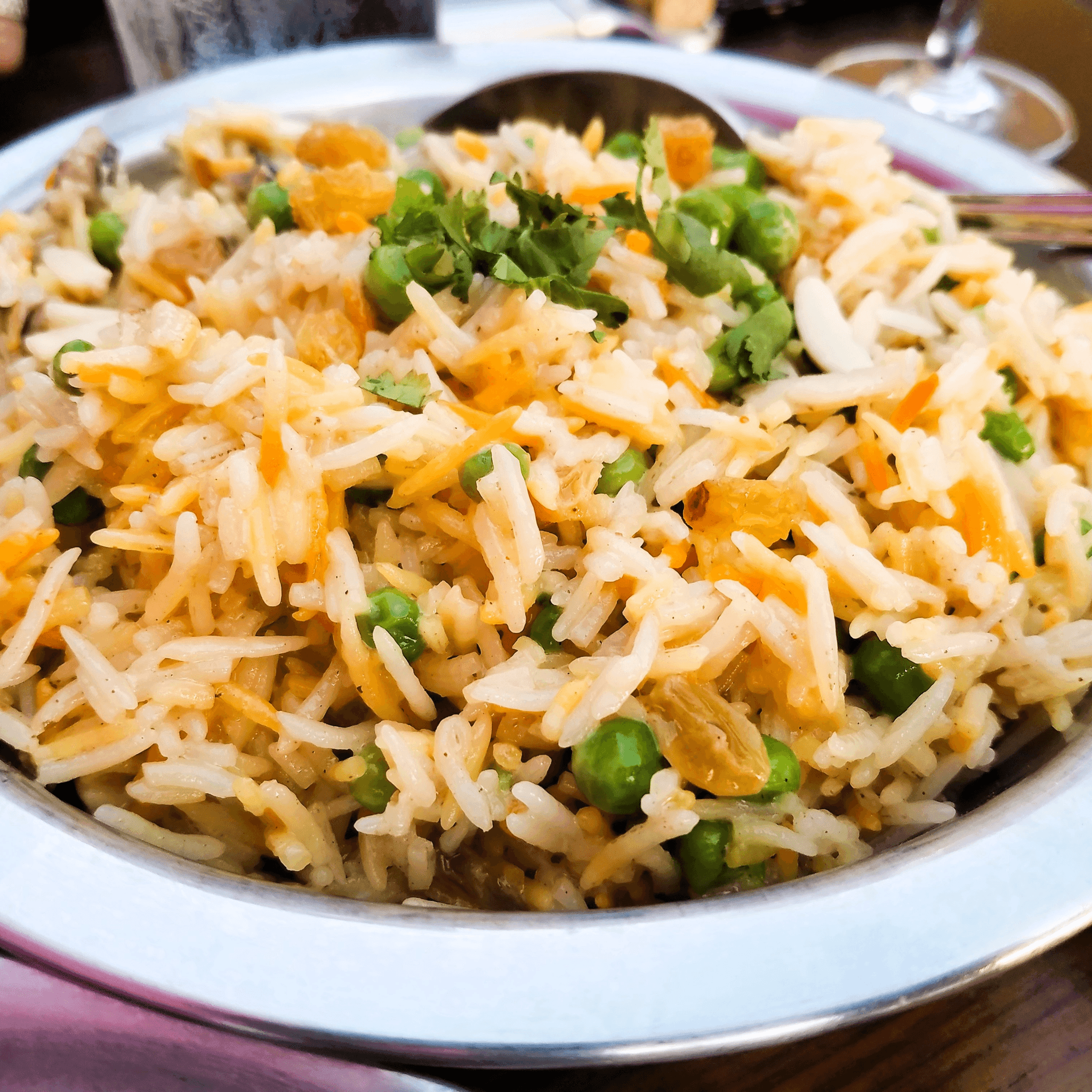 Specialty from Banaras, fresh vegetables, nuts and raisins with basmati rice. Akbar Staple since 1976