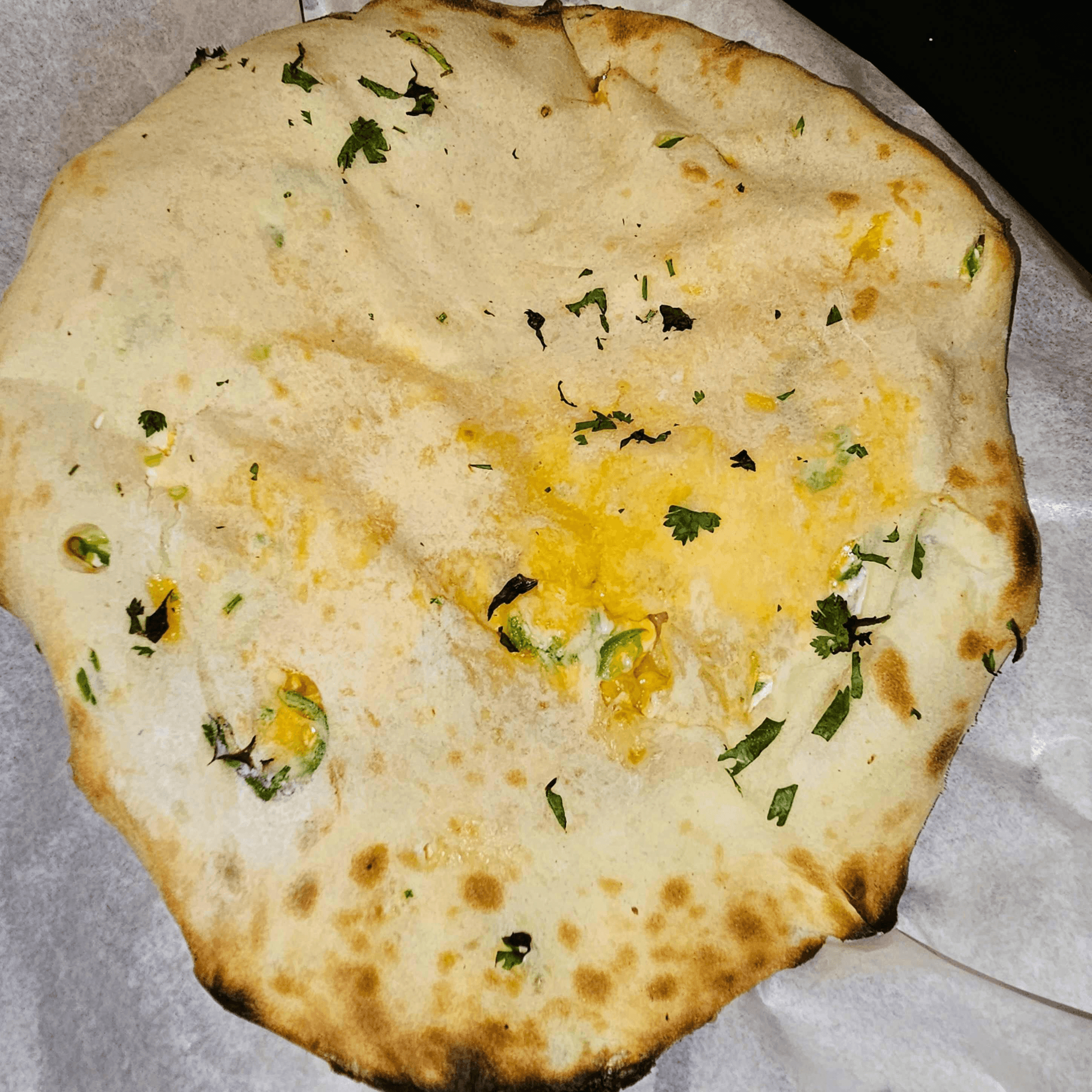 Naan stuffed with cheddar, parmesan and cream cheeses
