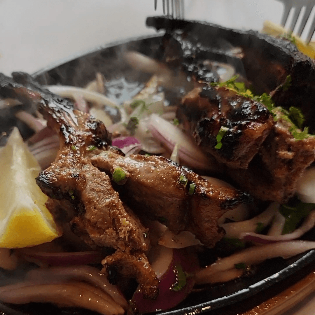 Tender lamb sauteed cooked with onions, serrano flavored with sundried mango powder