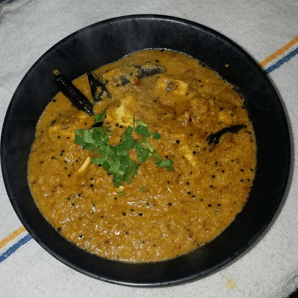 Tofu prepared in a spicy coconut sauce tempered with mustard seeds and chili peppers